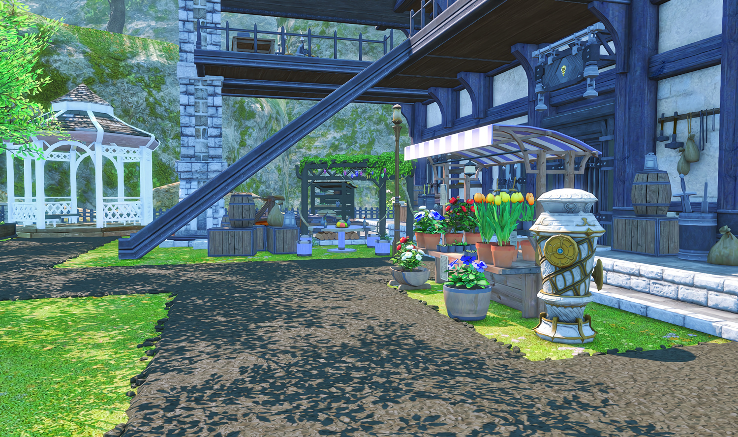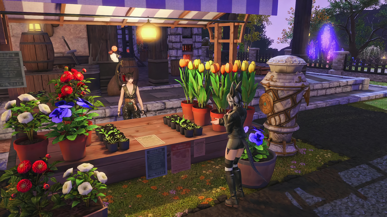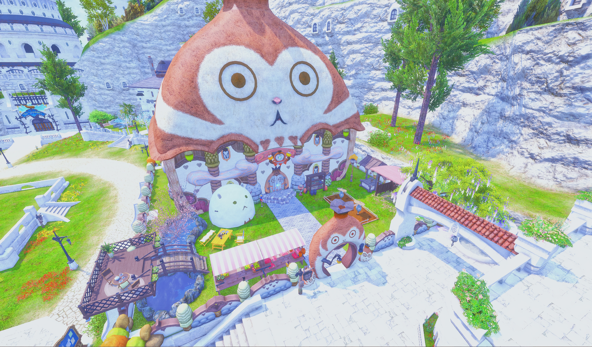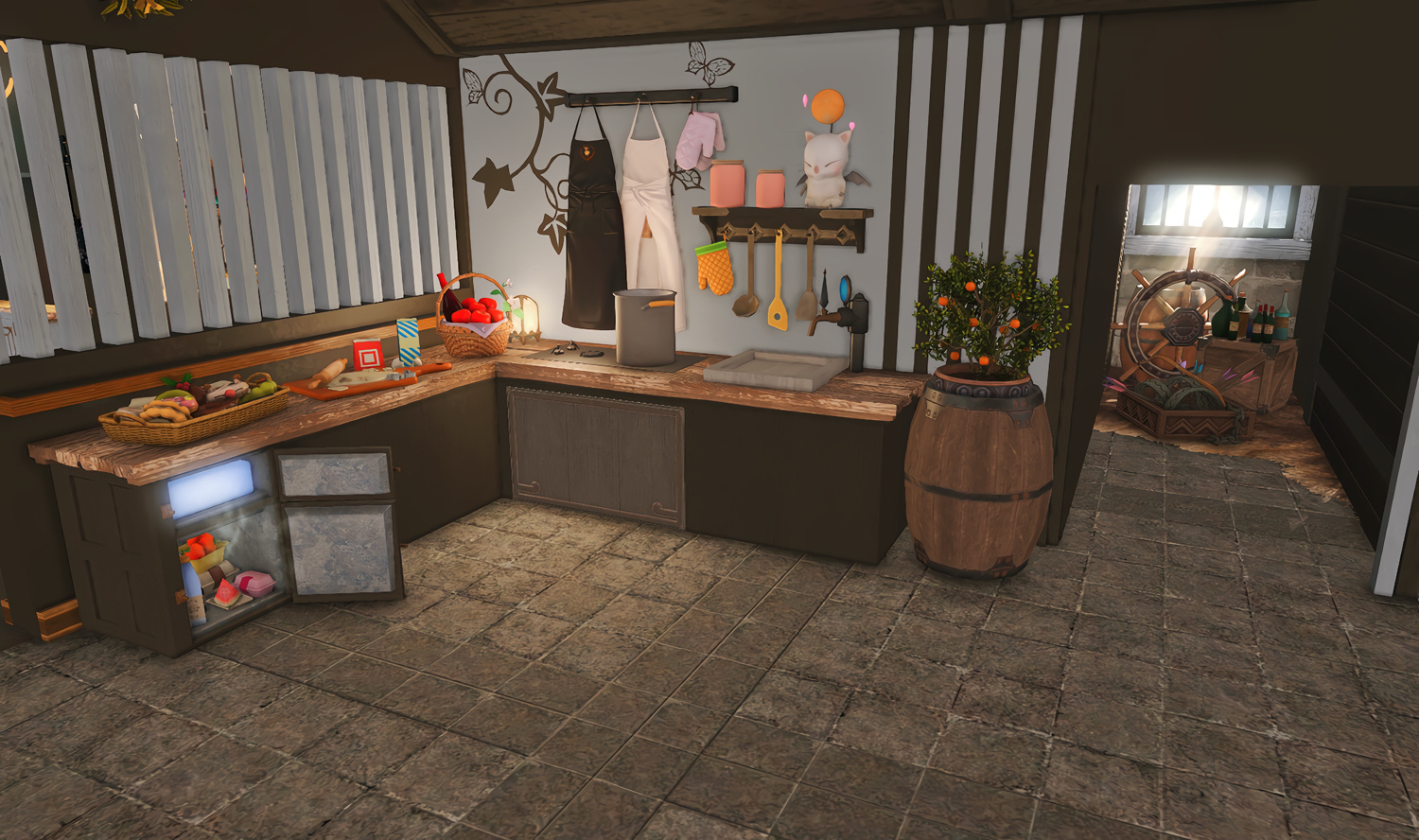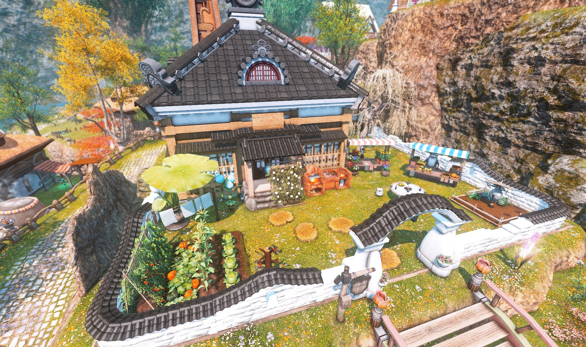 Nestled in the midst of a cozy fc in the mist lies a tiny rustic hut where a little cat girl lives. Singing as she cooks for her friends and guests, the cottagecore vibes are accented with the little 'squeak squeak' sounds from the feet of many a pet namazu that reside here.