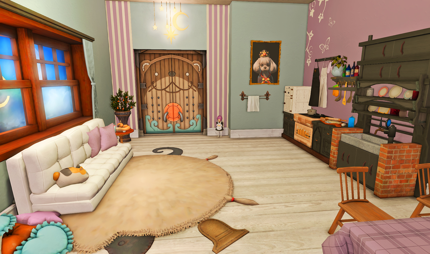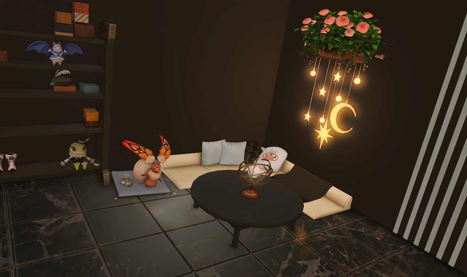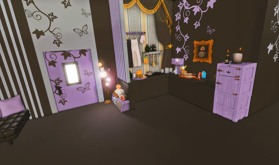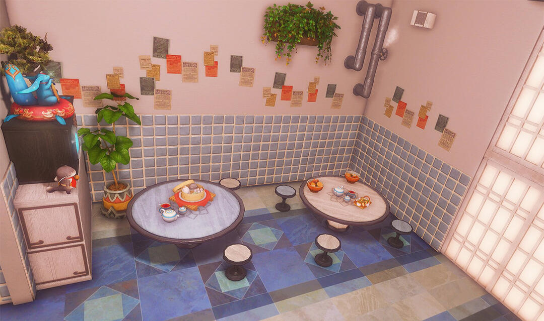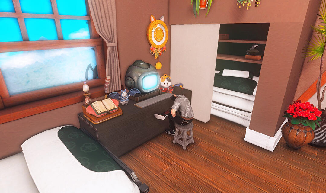 Before being converted into a family cafe business, the former Odder Otter house boasted a cozy hingan cottagecore vibe for a family of four. Many a meal has been eaten in front of the tv, and everyone has their own little nook to nap, read a book, or just scroll through their tomestones.