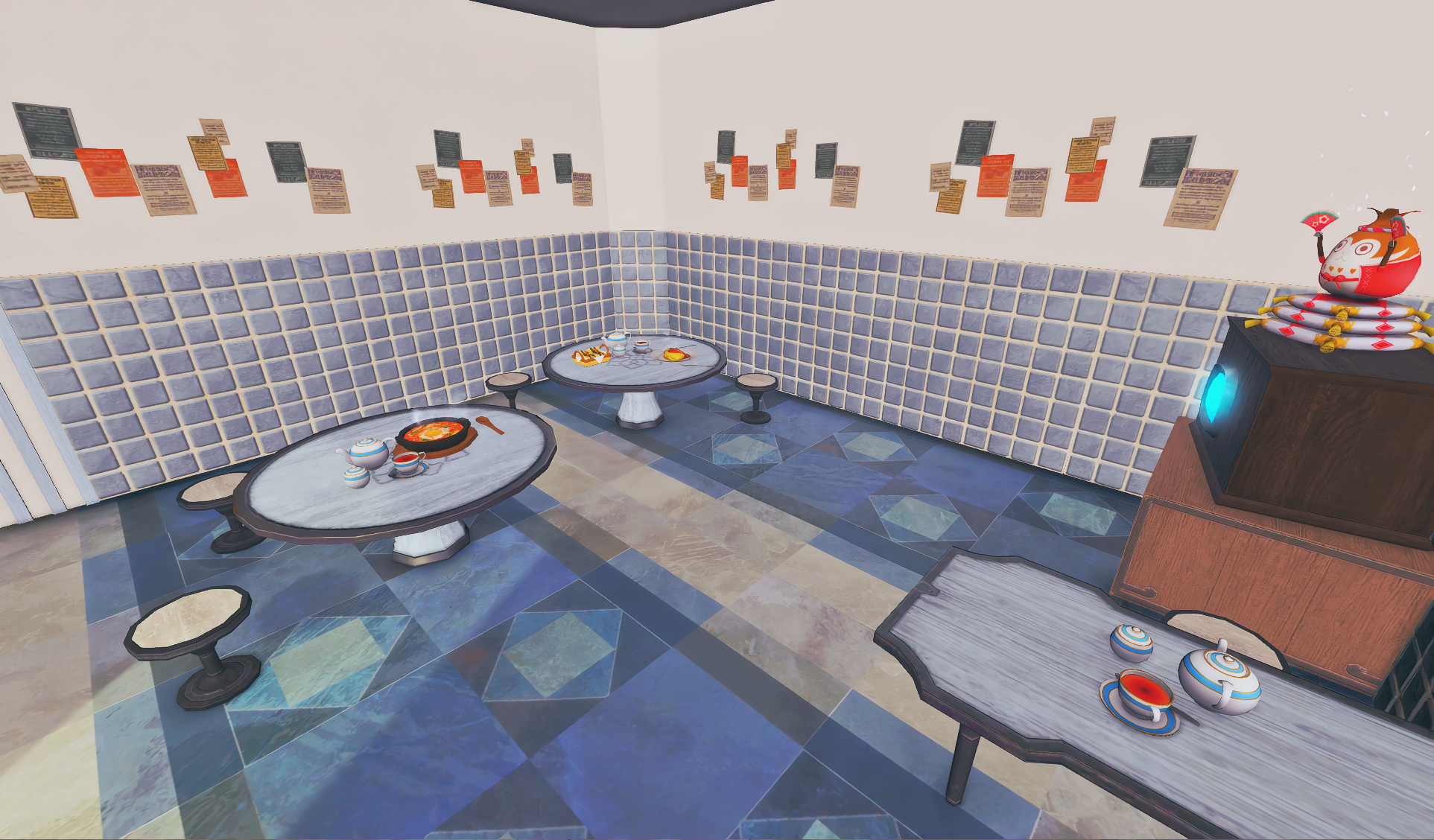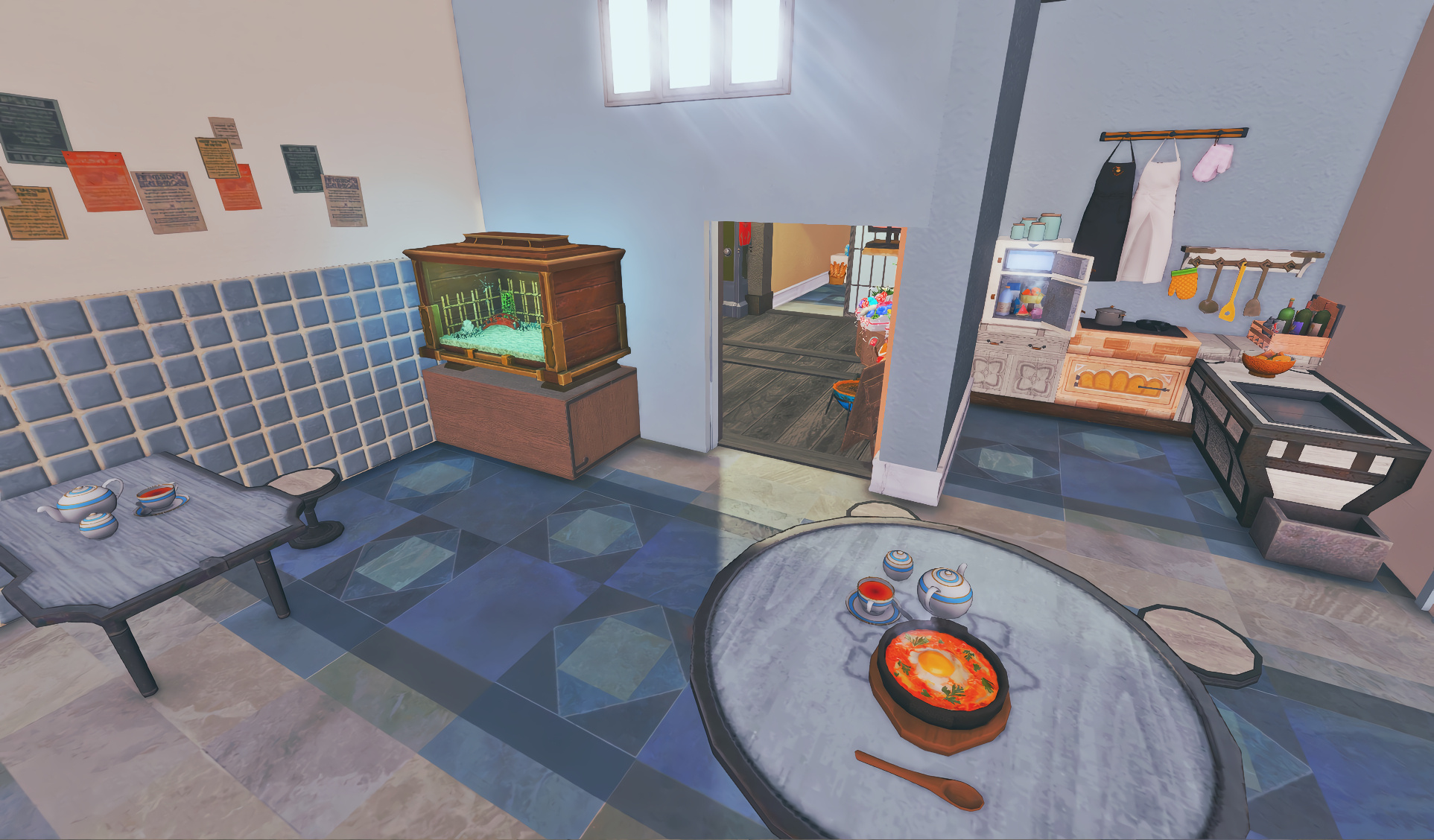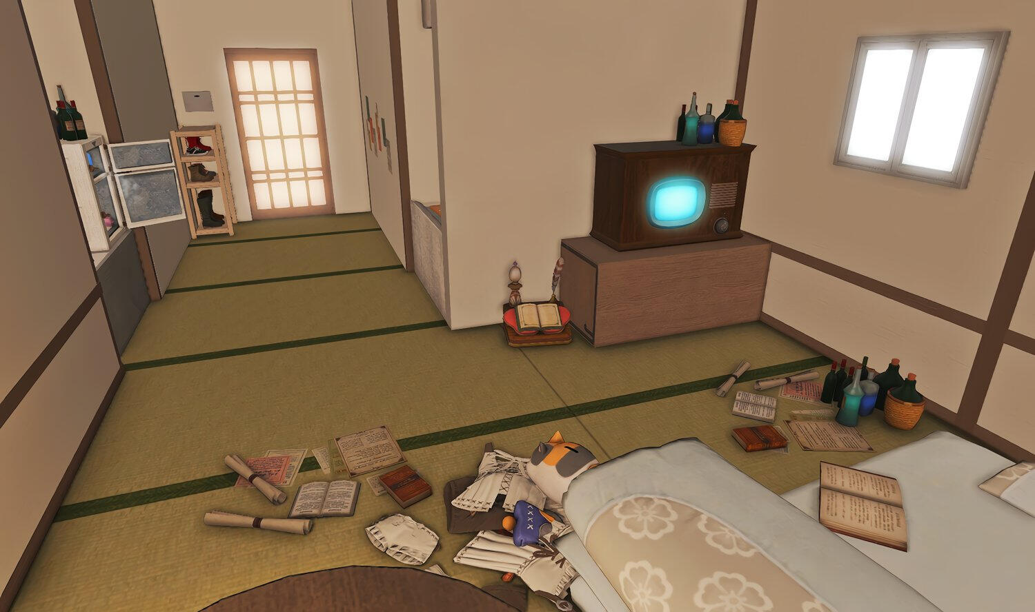 Before being converted into a family cafe business, the former Odder Otter house boasted a cozy hingan cottagecore vibe for a family of four. Many a meal has been eaten in front of the tv, and everyone has their own little nook to nap, read a book, or just scroll through their tomestones.
