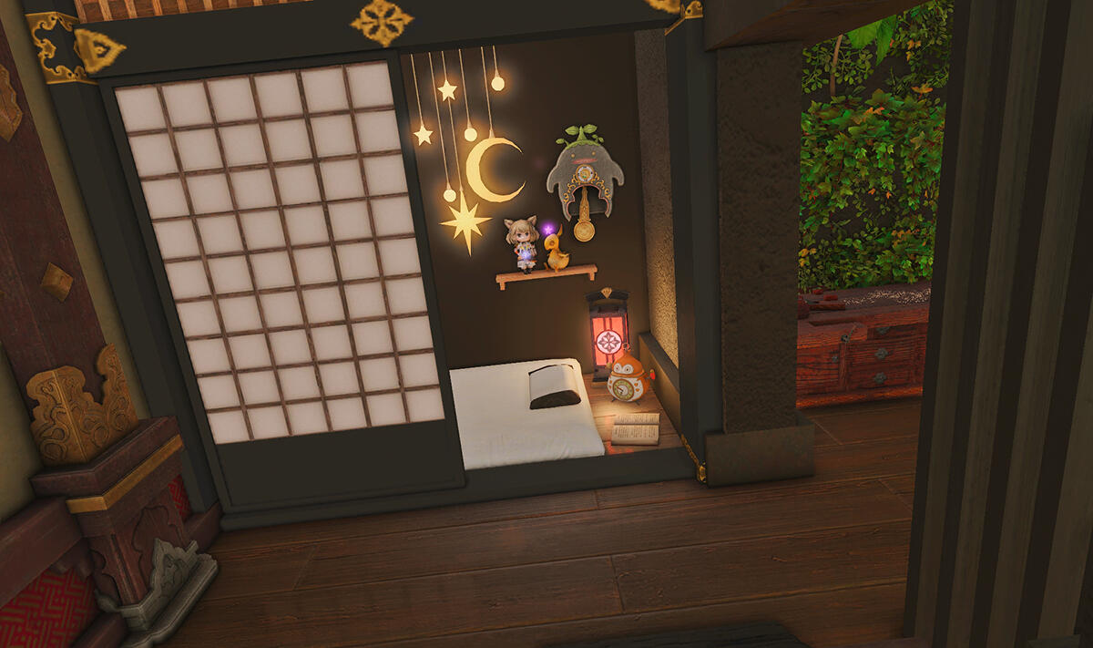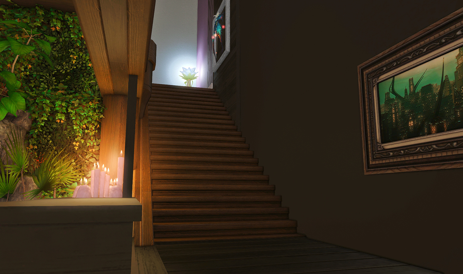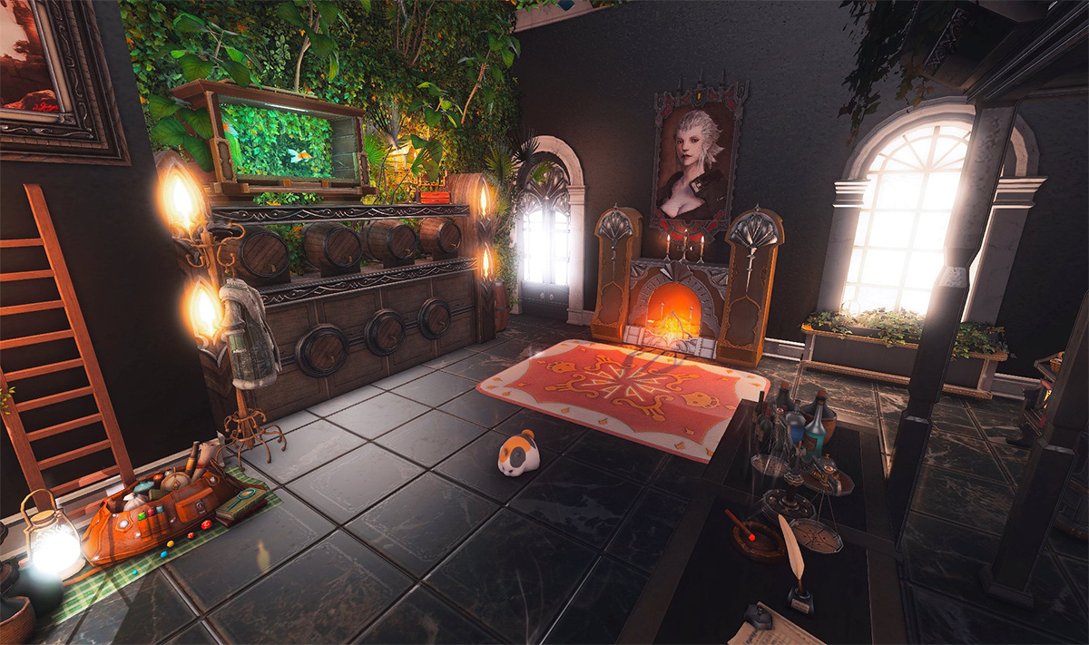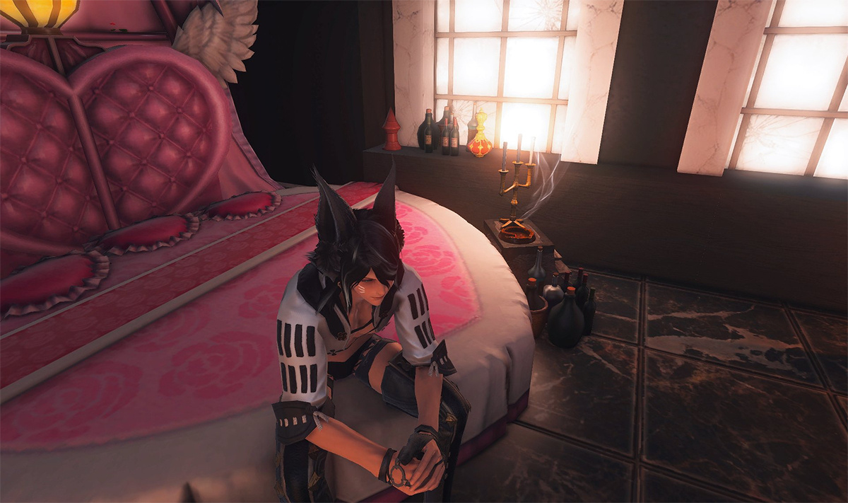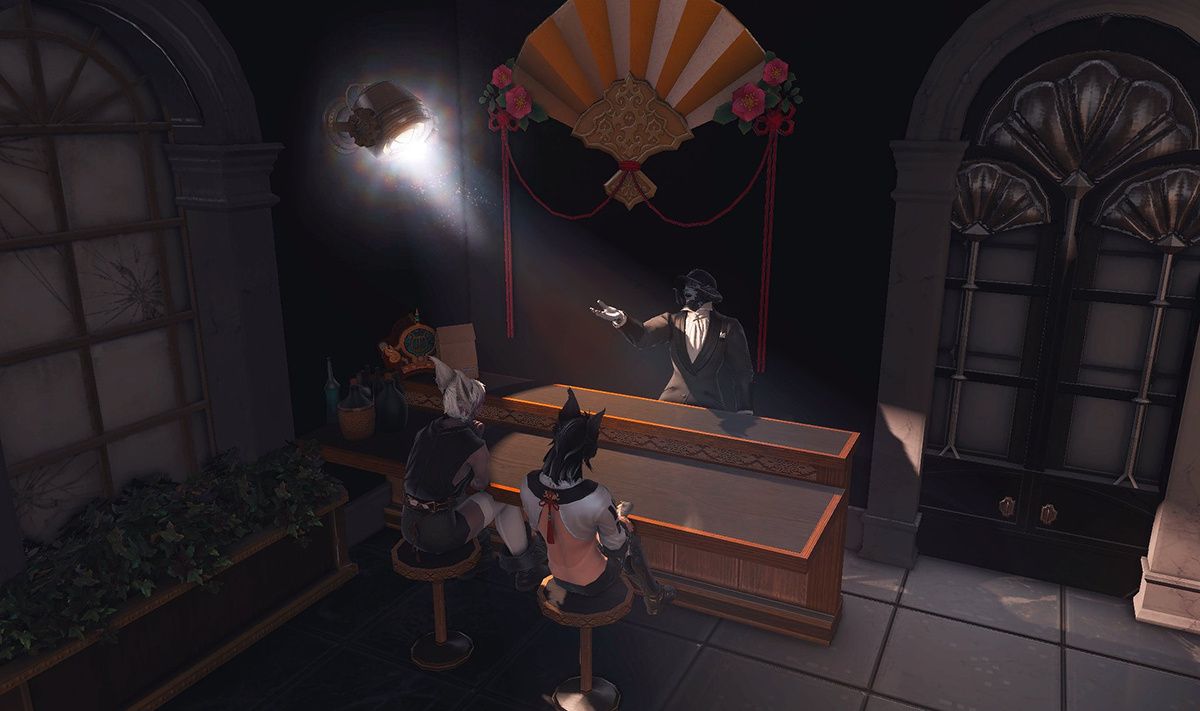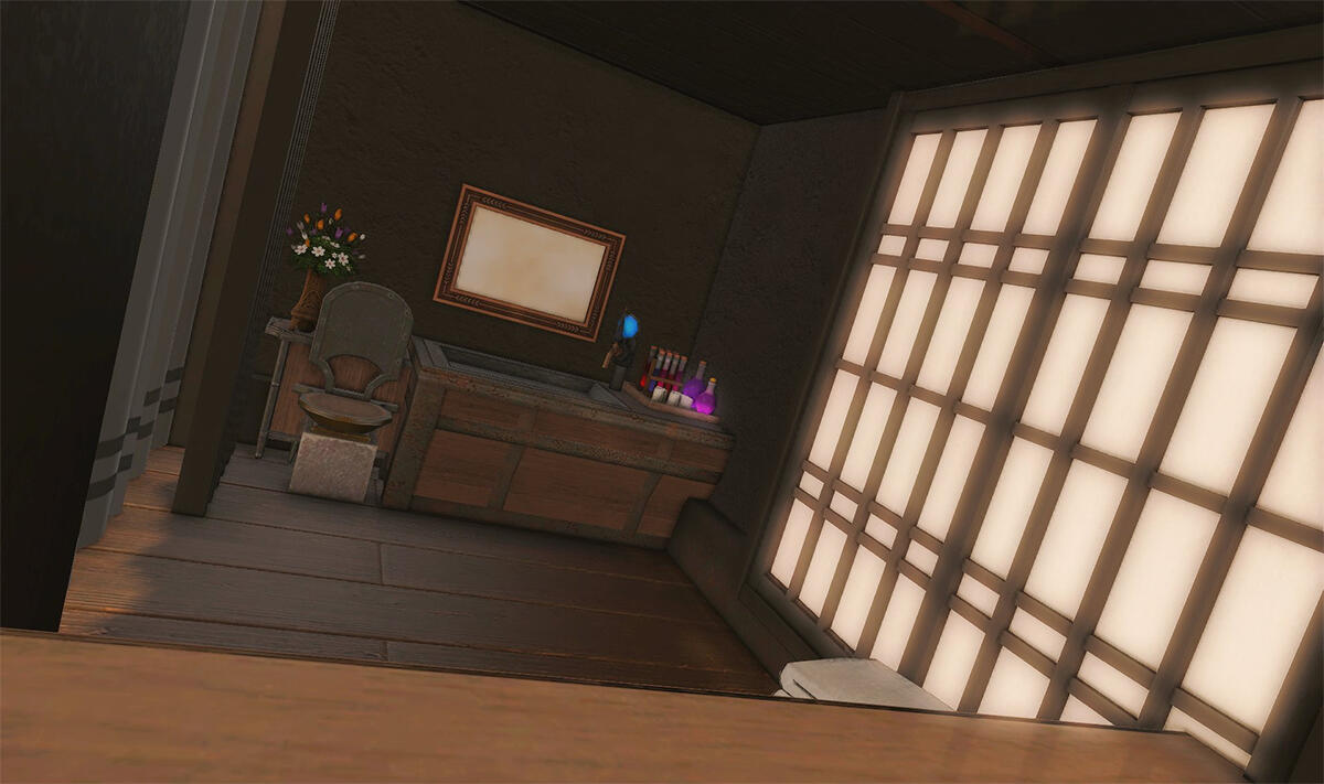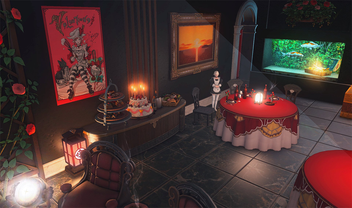 The locals tell of a mansion in the depths of The Black Shroud whose entryway glows with a soft and rustic light that invites you to spend some time with them, but opens to a large house with a dark, and strangely modern interior. Glowing portraits and magical game boxes, and a hidden balcony with a view of the night sky, one wonders who (or what) owns such a building.