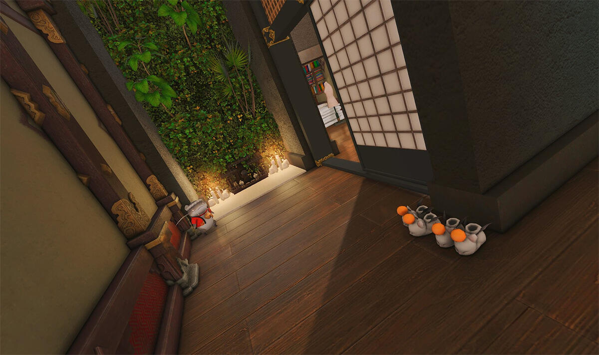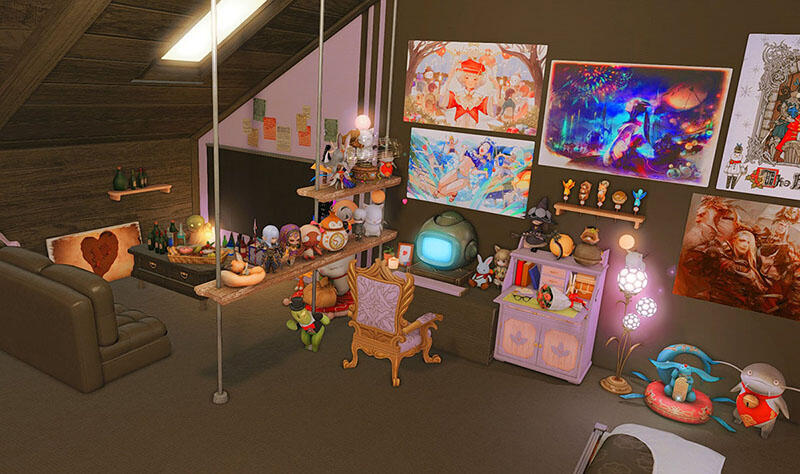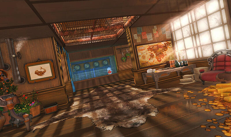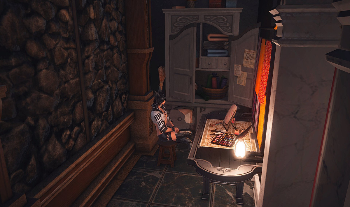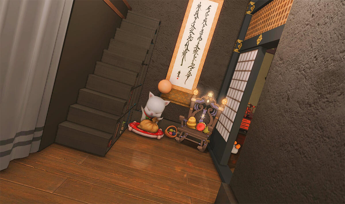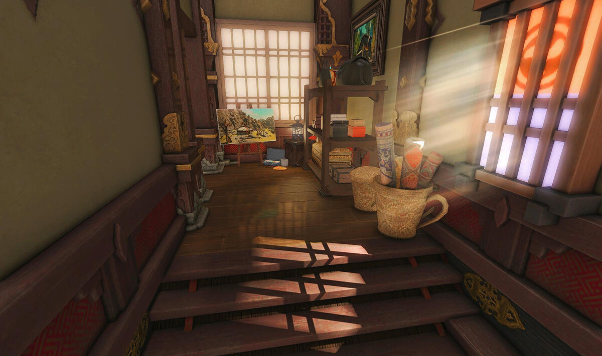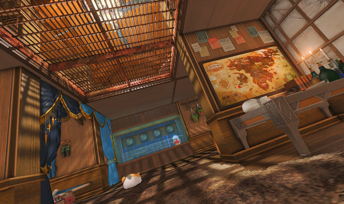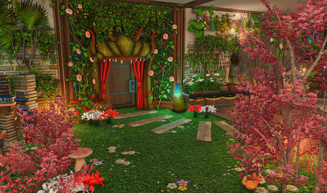 The locals tell of a mansion in the depths of The Black Shroud whose entryway glows with a soft and rustic light that invites you to spend some time with them, but opens to a large house with a dark, and strangely modern interior. Glowing portraits and magical game boxes, and a hidden balcony with a view of the night sky, one wonders who (or what) owns such a building.