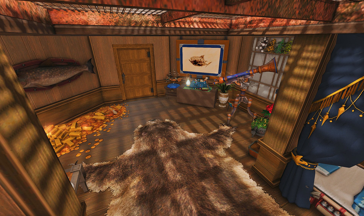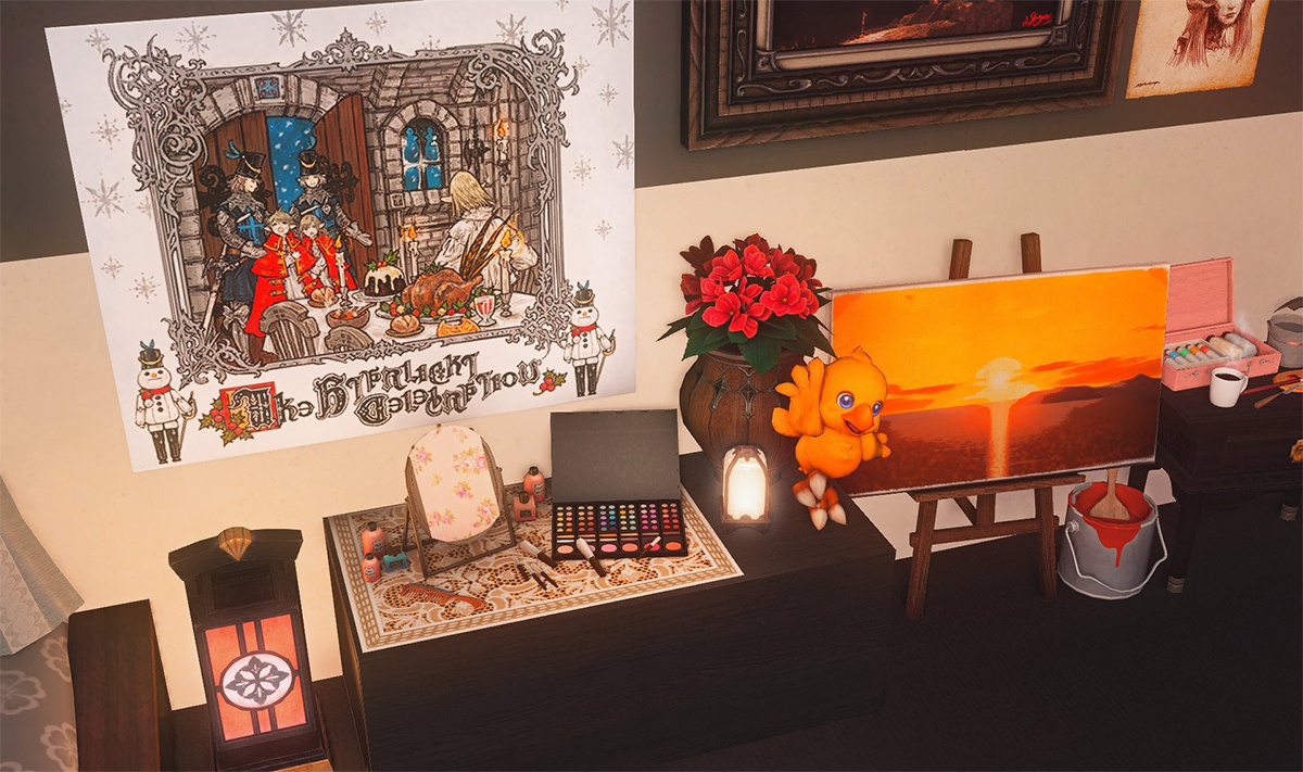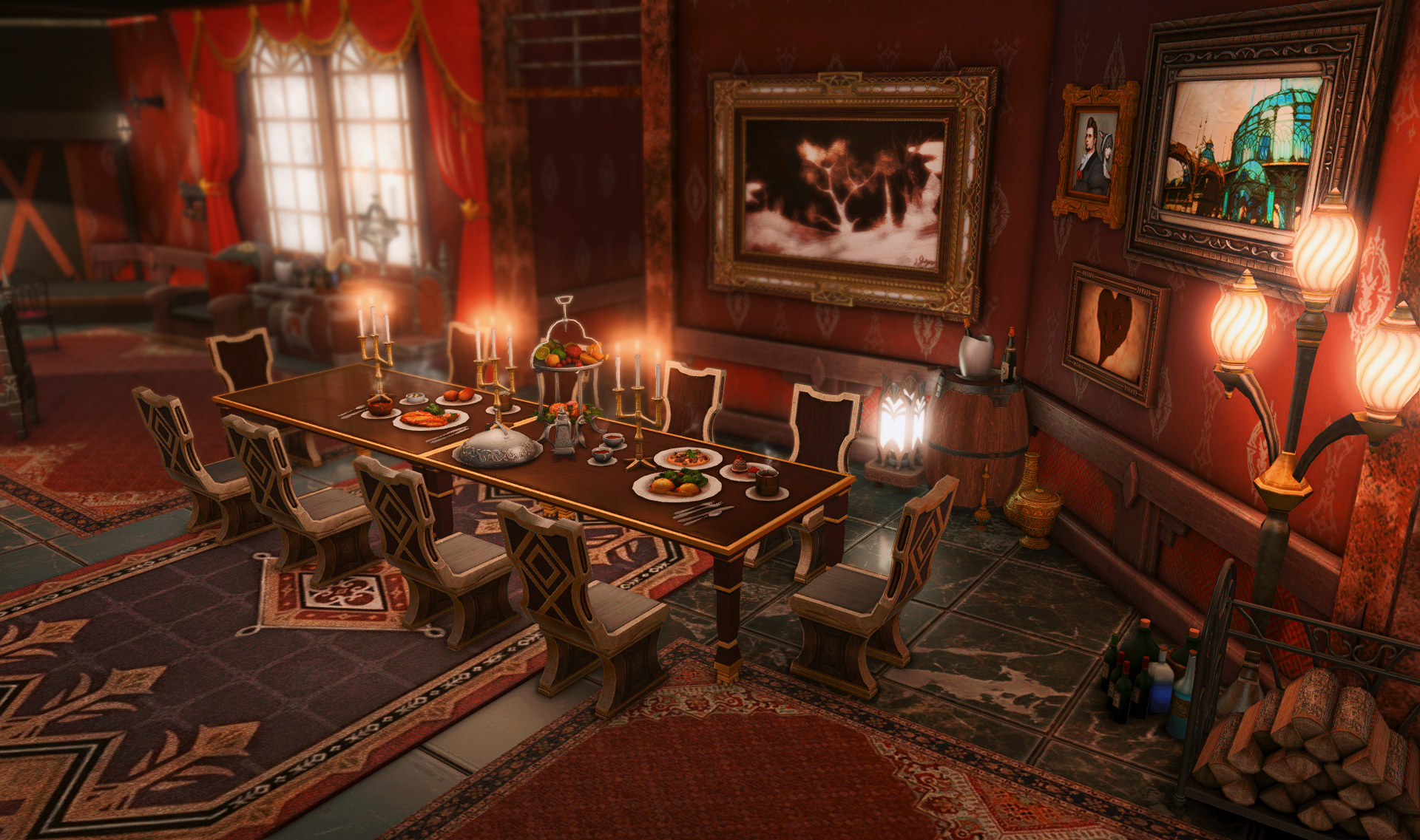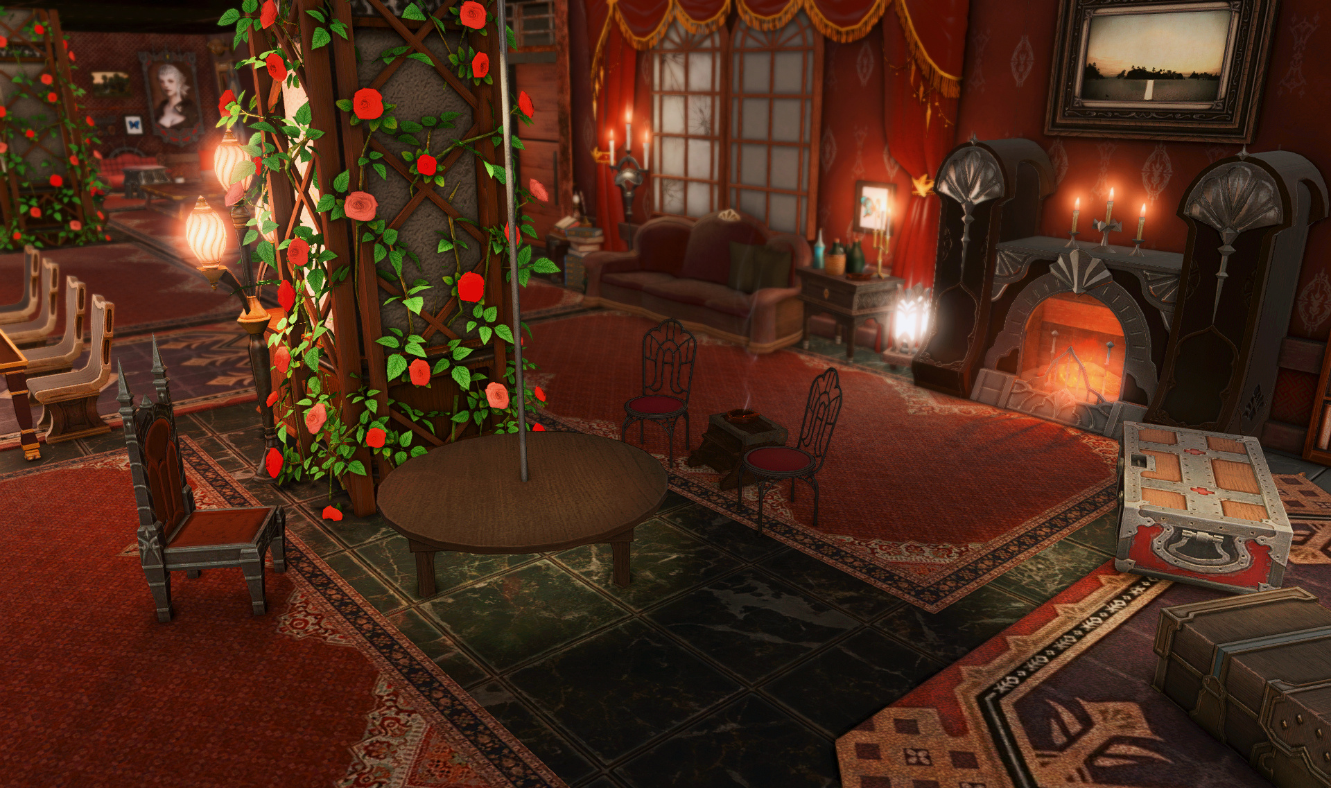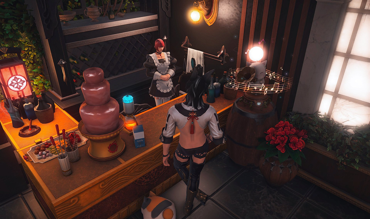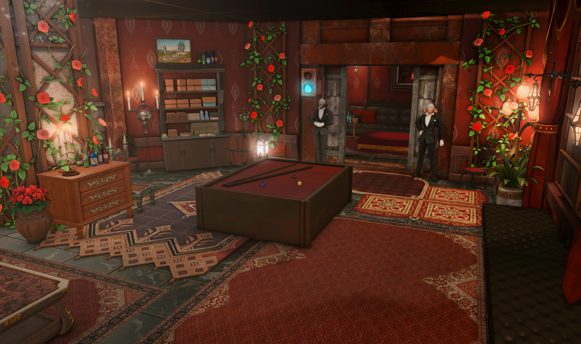 The locals tell of a mansion in the depths of The Black Shroud whose entryway glows with a soft and rustic light that invites you to spend some time with them, but opens to a large house with a dark, and strangely modern interior. Glowing portraits and magical game boxes, and a hidden balcony with a view of the night sky, one wonders who (or what) owns such a building.