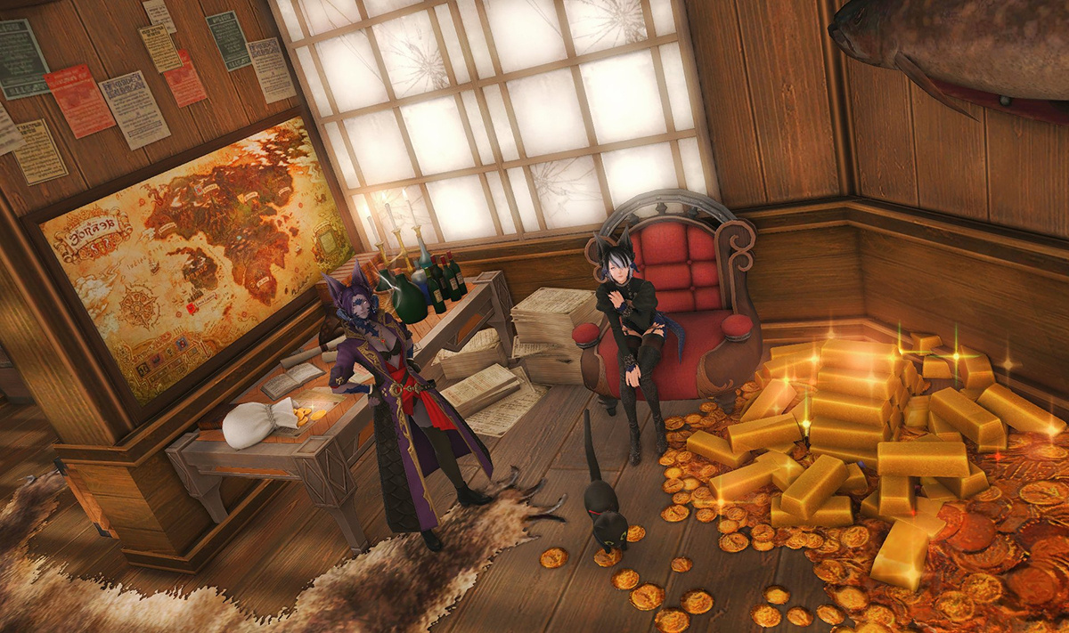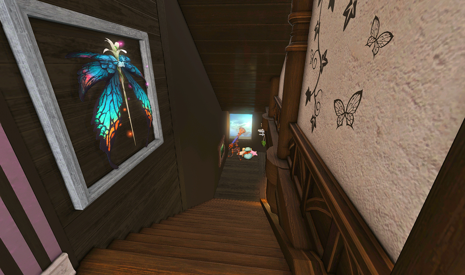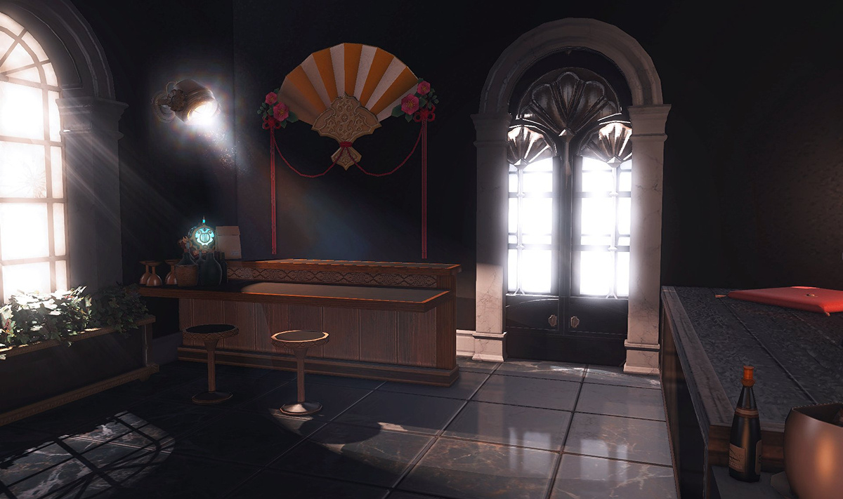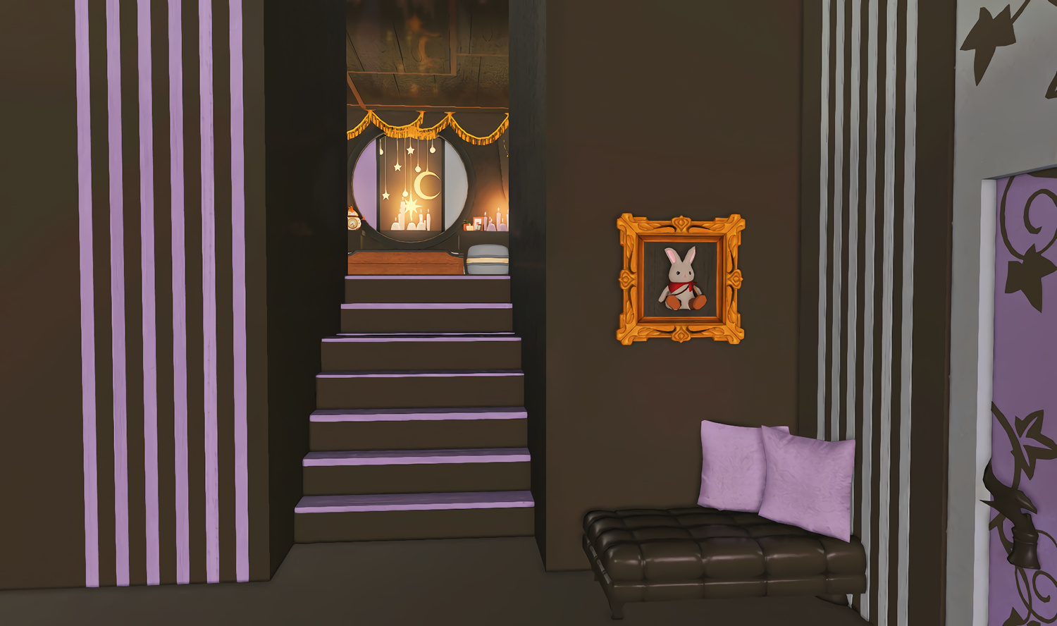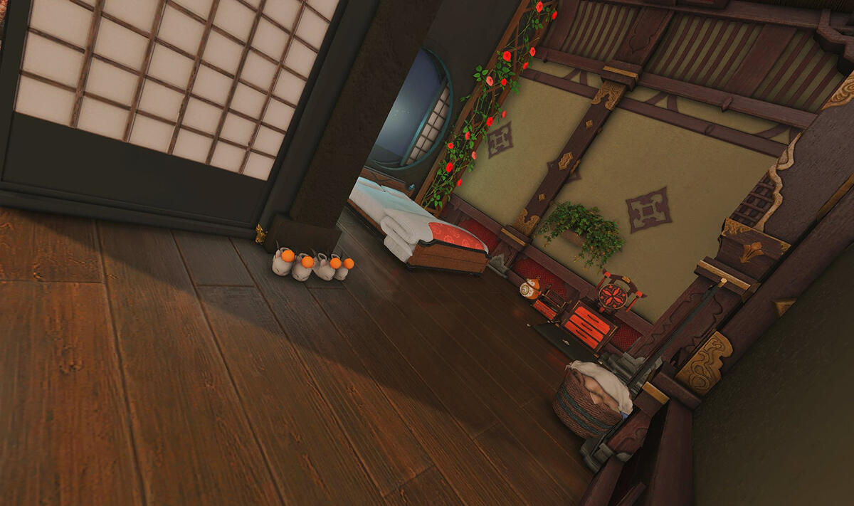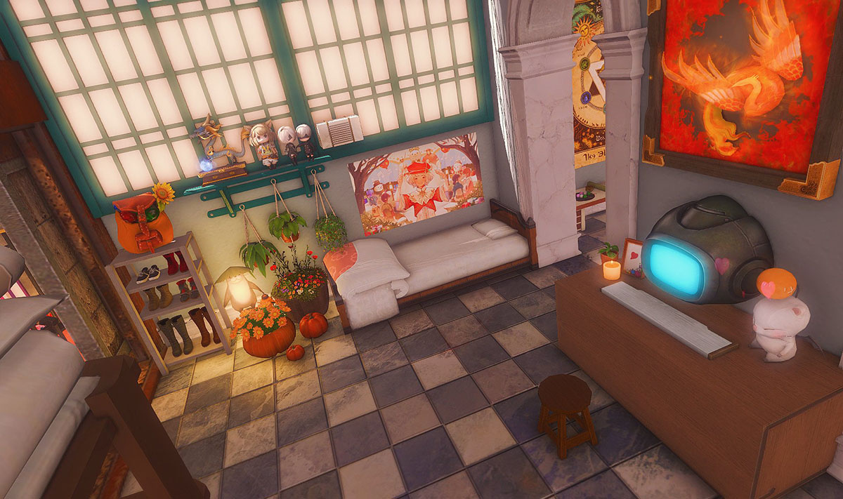 The locals tell of a mansion in the depths of The Black Shroud whose entryway glows with a soft and rustic light that invites you to spend some time with them, but opens to a large house with a dark, and strangely modern interior. Glowing portraits and magical game boxes, and a hidden balcony with a view of the night sky, one wonders who (or what) owns such a building.