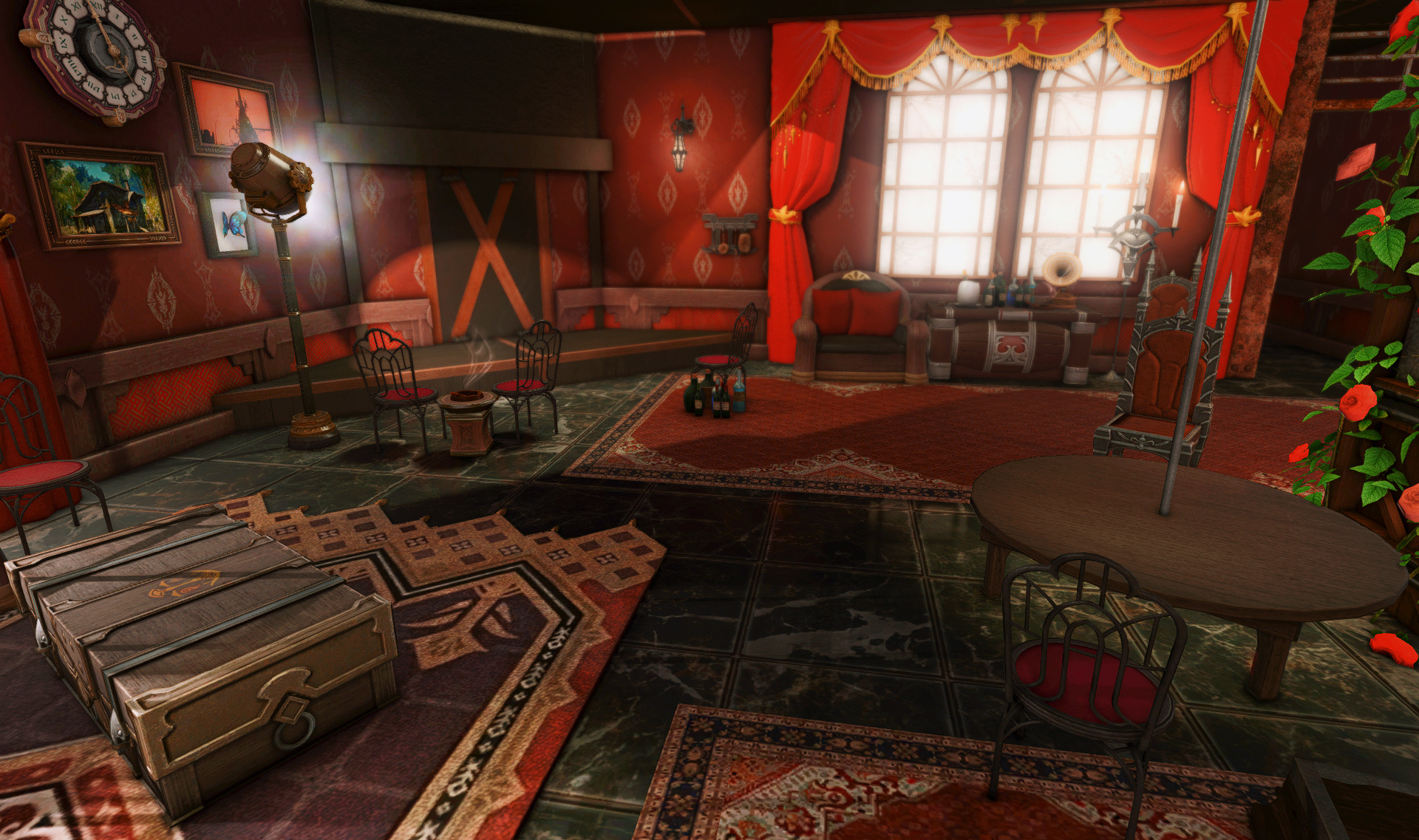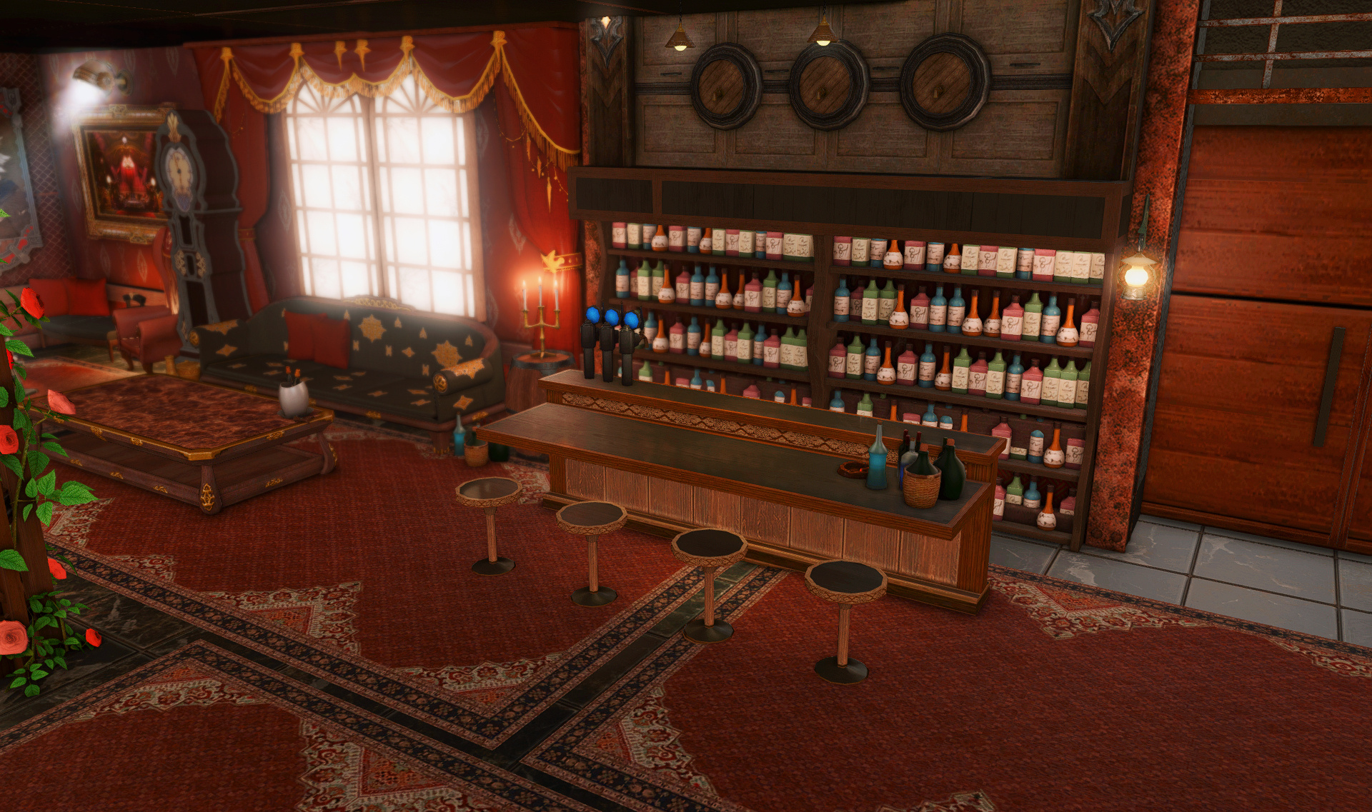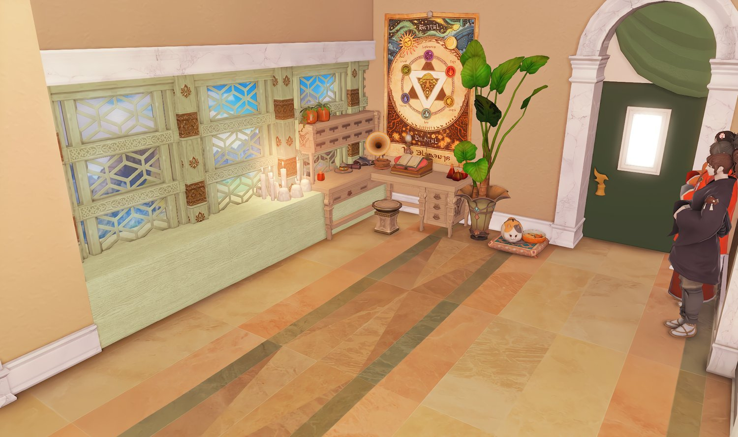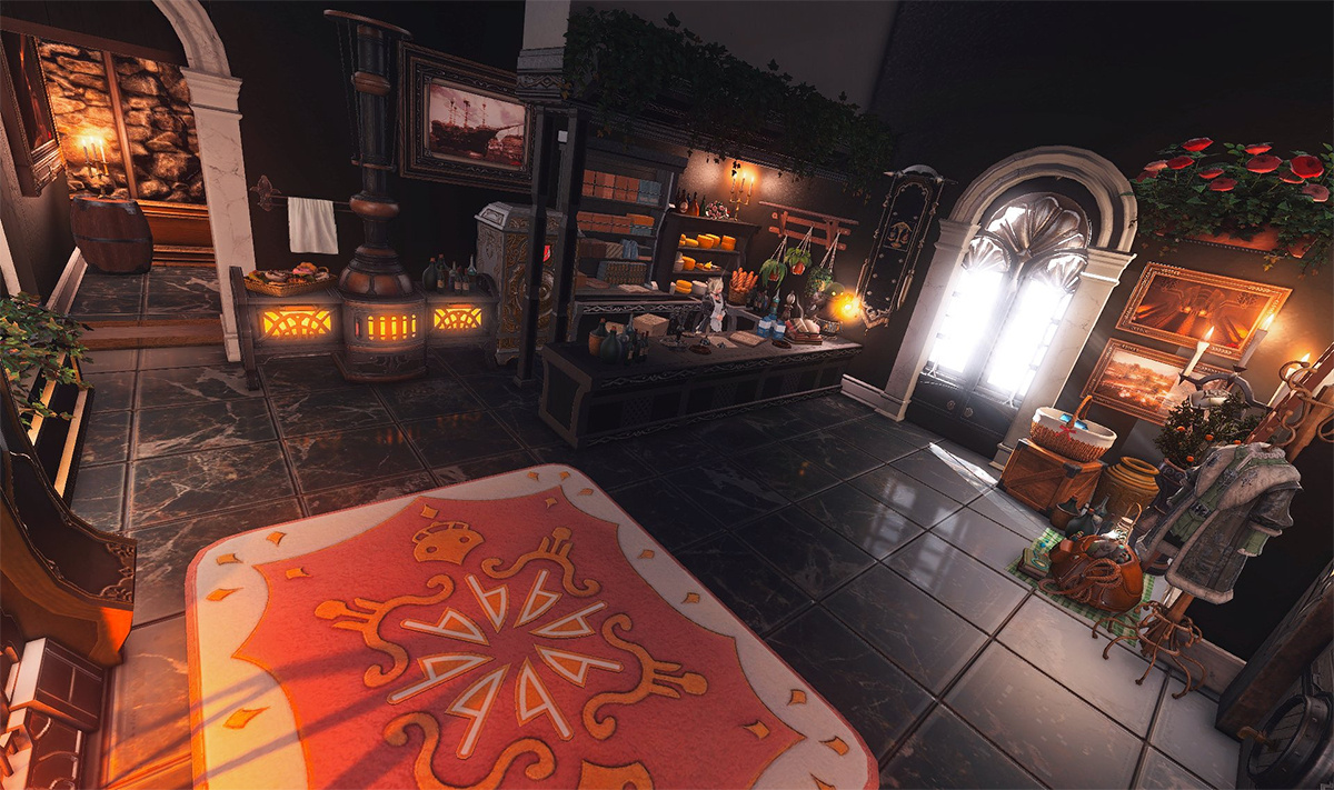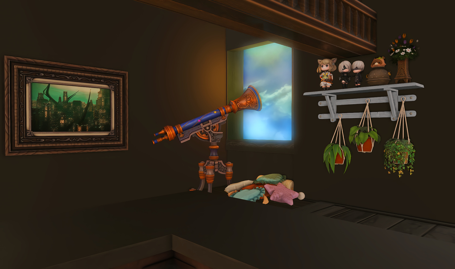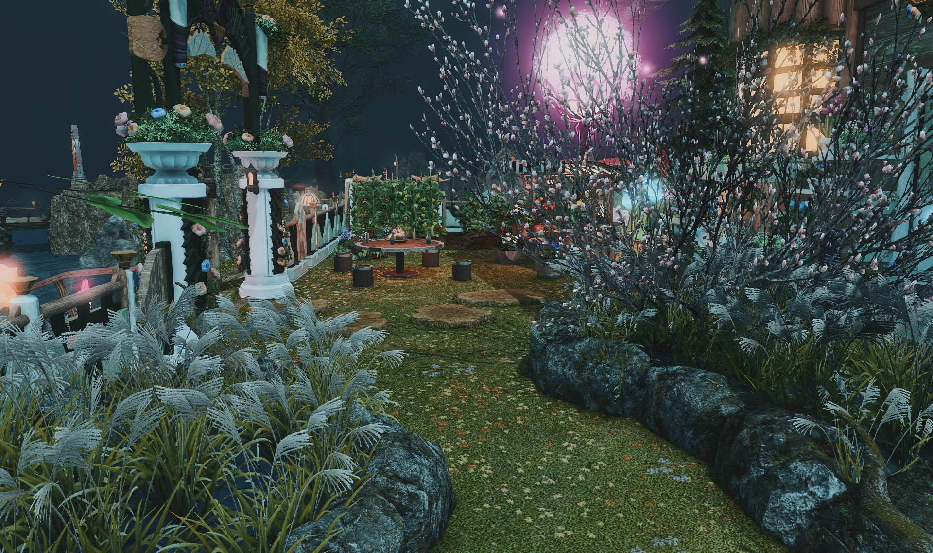 The locals tell of a mansion in the depths of The Black Shroud whose entryway glows with a soft and rustic light that invites you to spend some time with them, but opens to a large house with a dark, and strangely modern interior. Glowing portraits and magical game boxes, and a hidden balcony with a view of the night sky, one wonders who (or what) owns such a building.