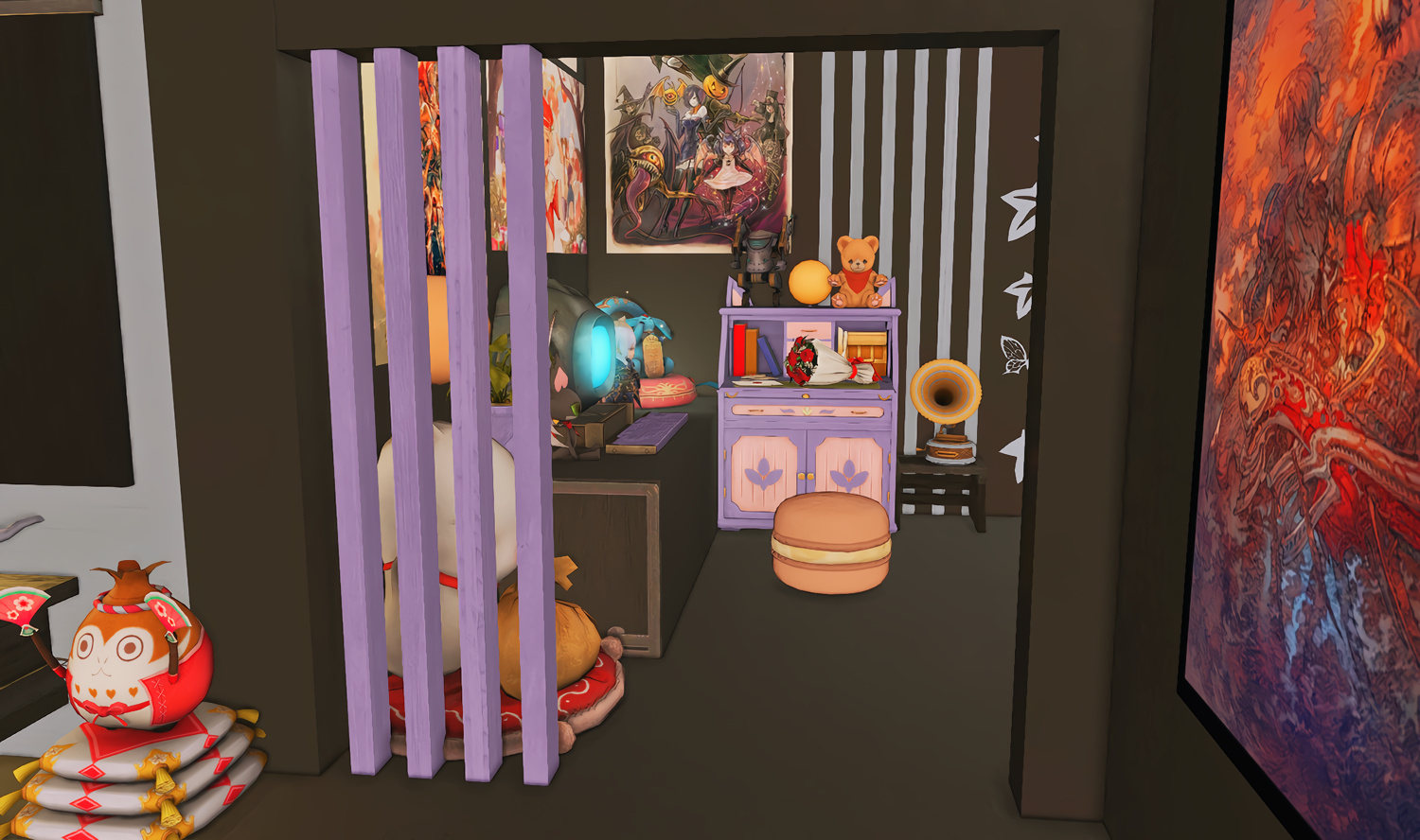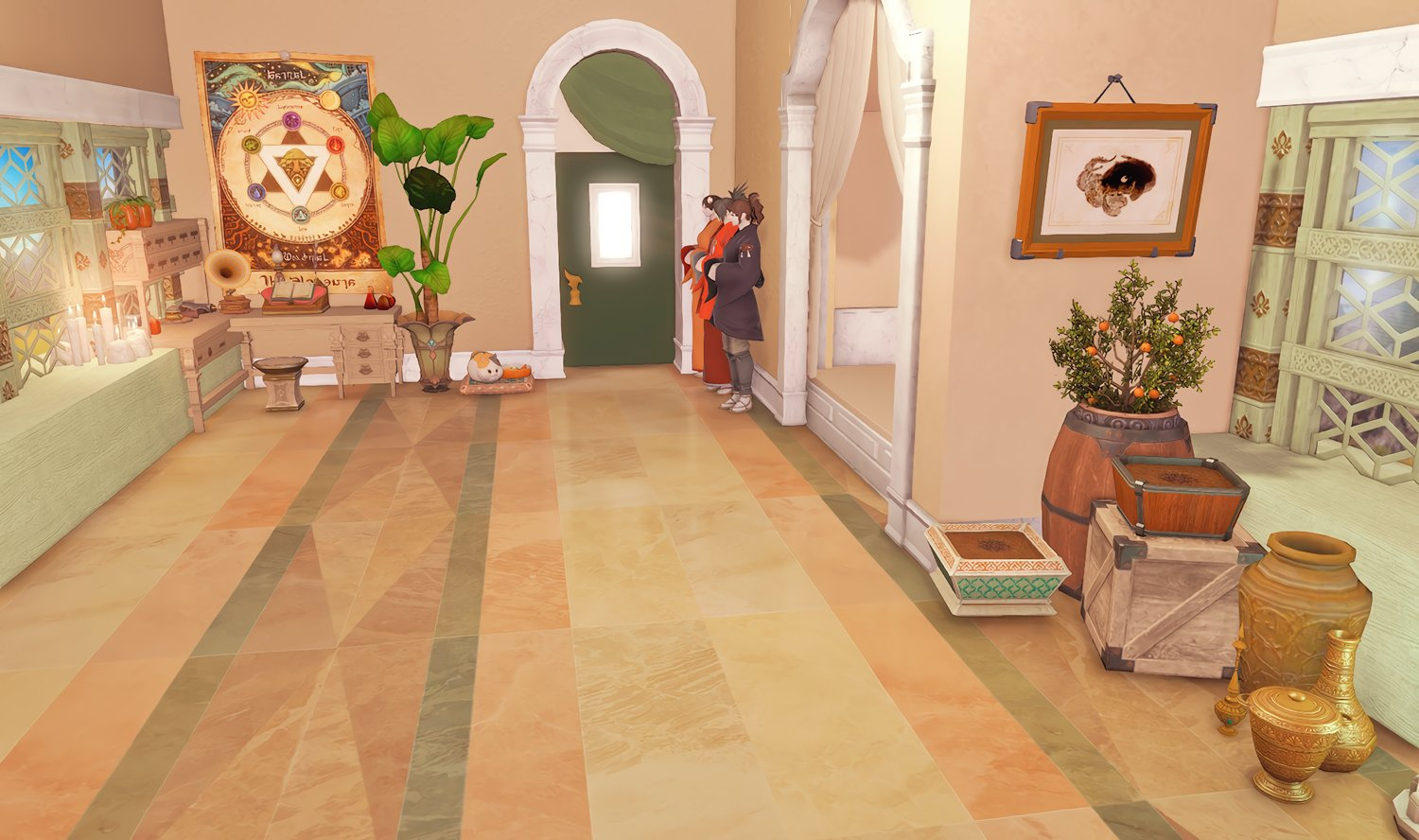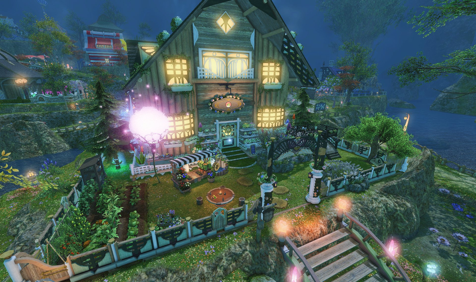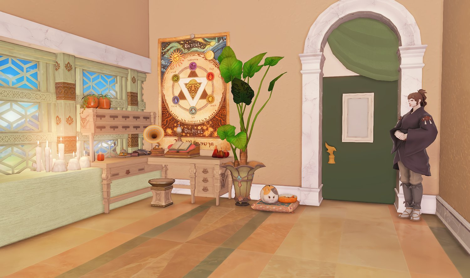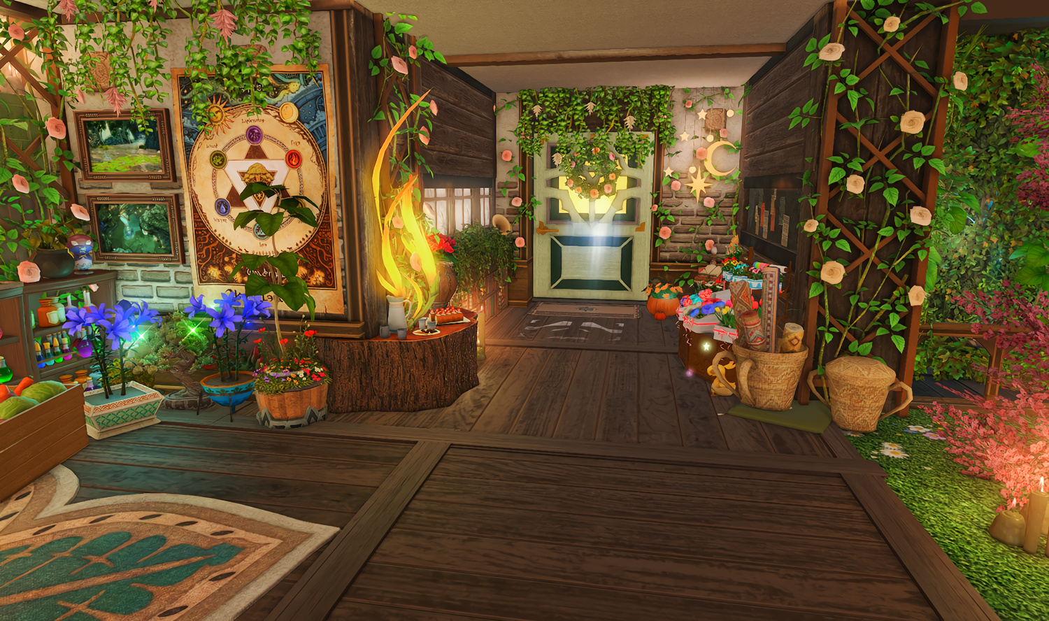The locals tell of a mansion in the depths of The Black Shroud whose entryway glows with a soft and rustic light that invites you to spend some time with them, but opens to a large house with a dark, and strangely modern interior. Glowing portraits and magical game boxes, and a hidden balcony with a view of the night sky, one wonders who (or what) owns such a building.