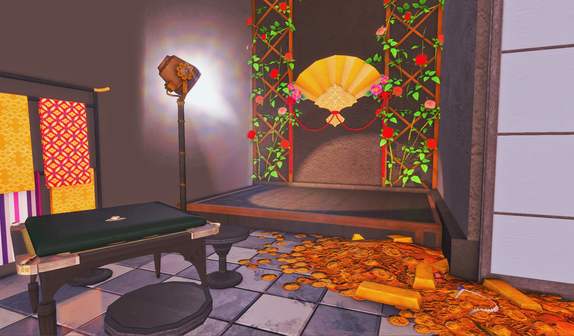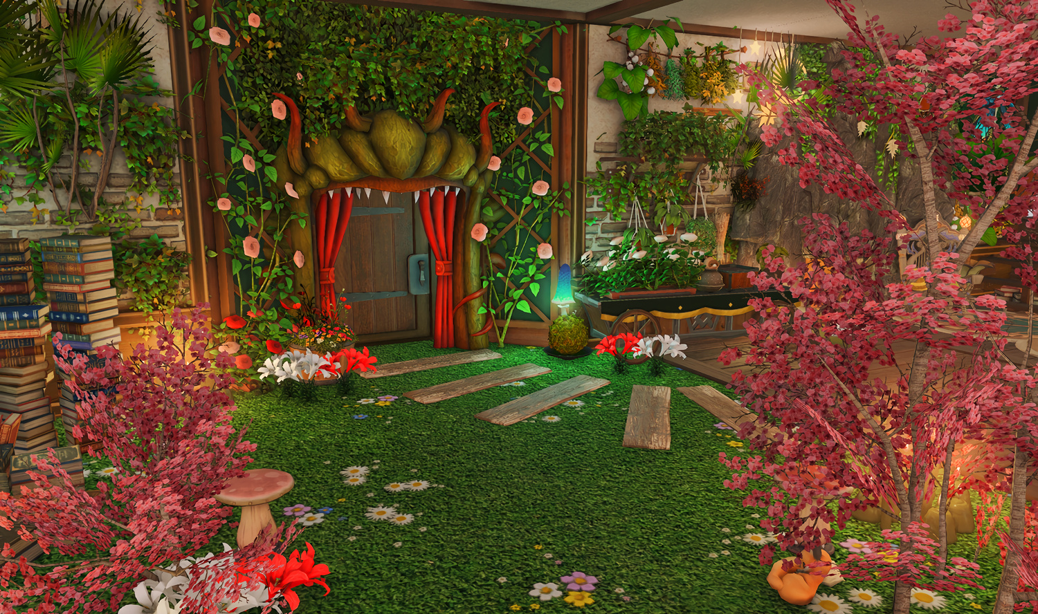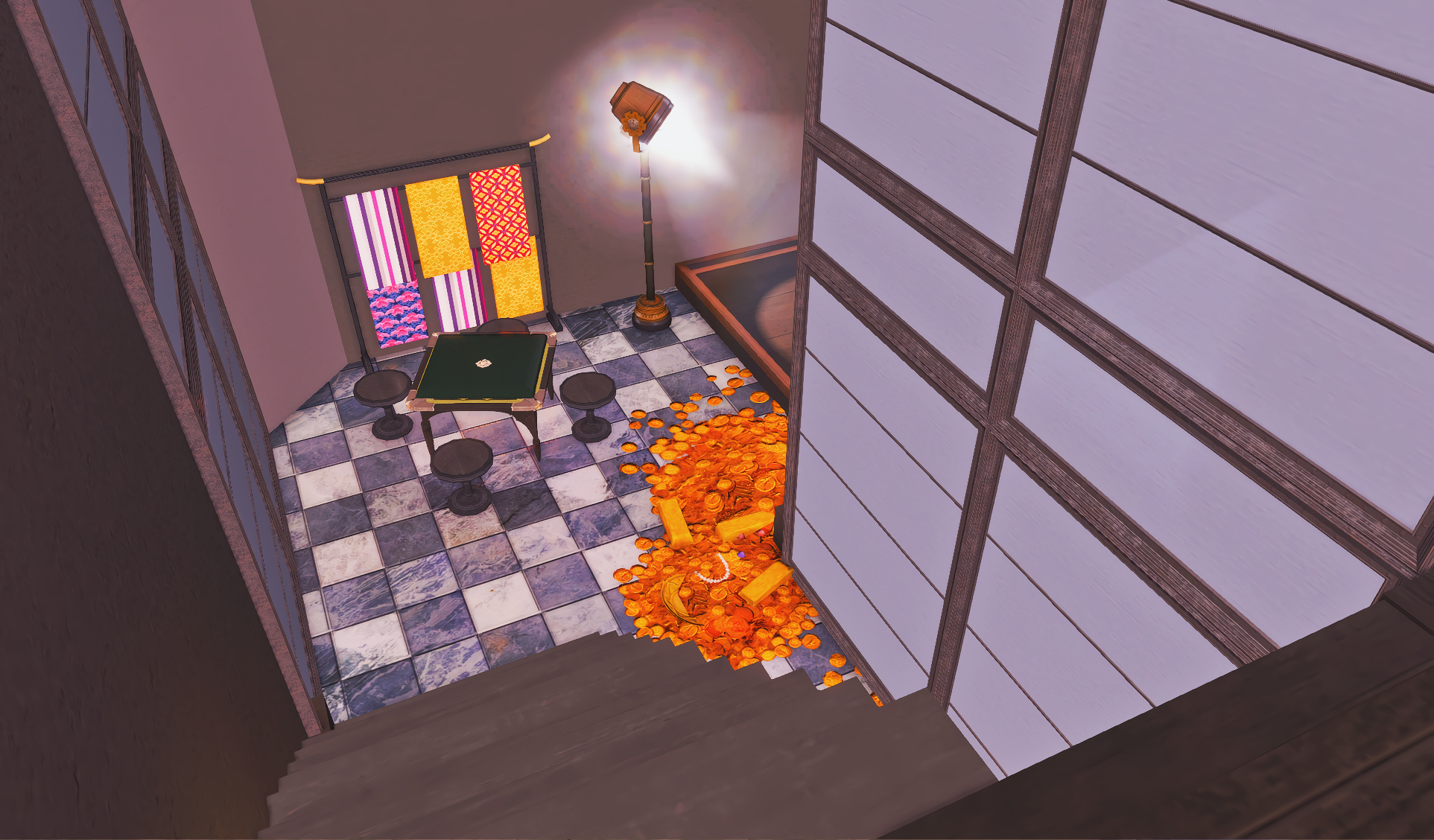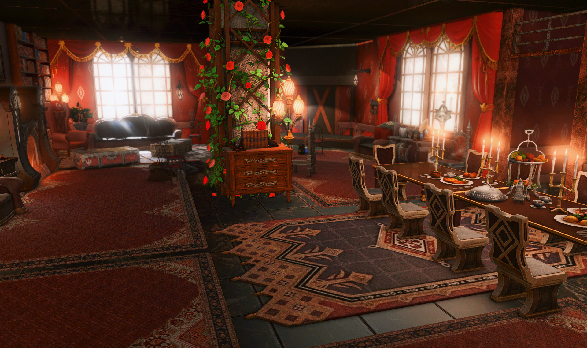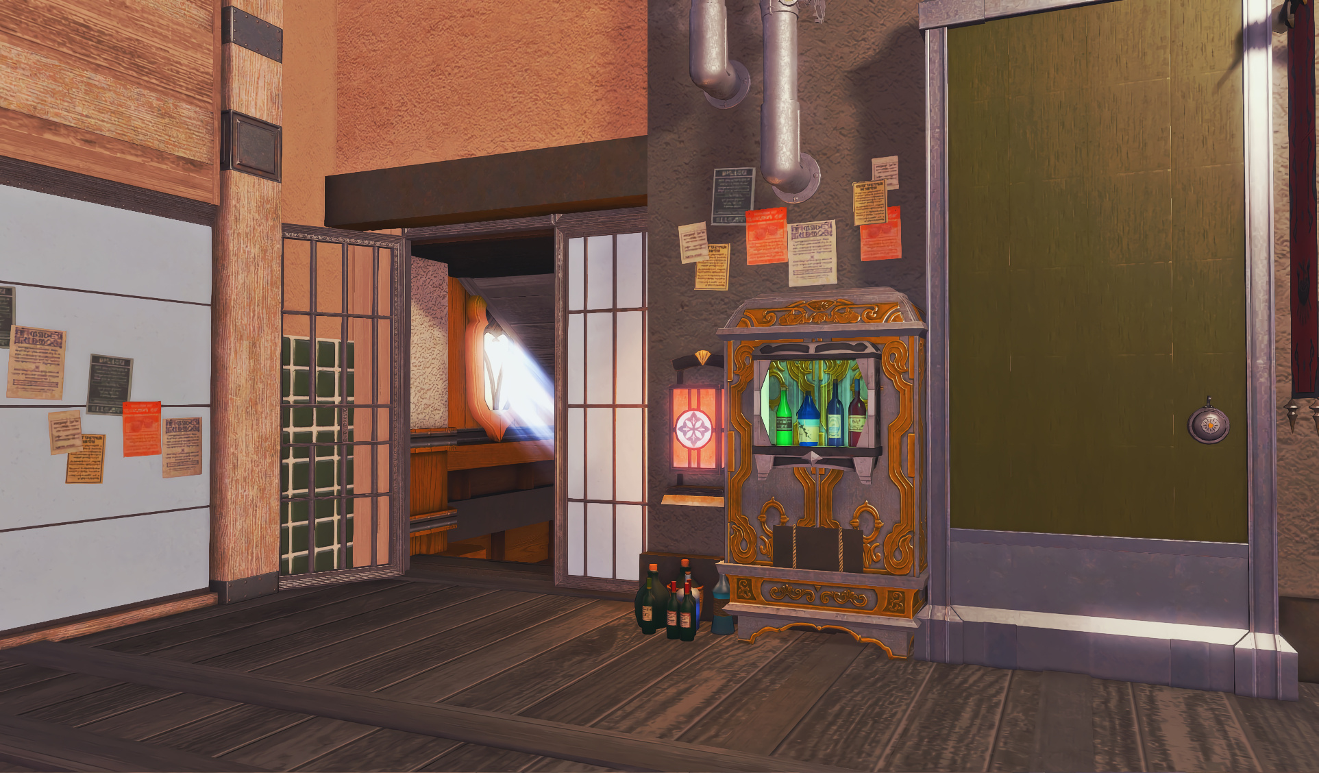 The locals tell of a mansion in the depths of The Black Shroud whose entryway glows with a soft and rustic light that invites you to spend some time with them, but opens to a large house with a dark, and strangely modern interior. Glowing portraits and magical game boxes, and a hidden balcony with a view of the night sky, one wonders who (or what) owns such a building.