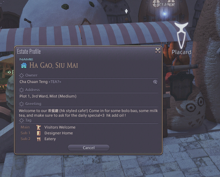 Hello! I'm spicy_bunboy (Nocturne on Balmung)! As an avid sims player, housing in ffxiv is definitely a very fun aspect of the game for me. I've done a few builds so far, mainly small houses and apartments for my friends and myself. I'm hoping to get into housing commissions for others, and hope we can work together soon!